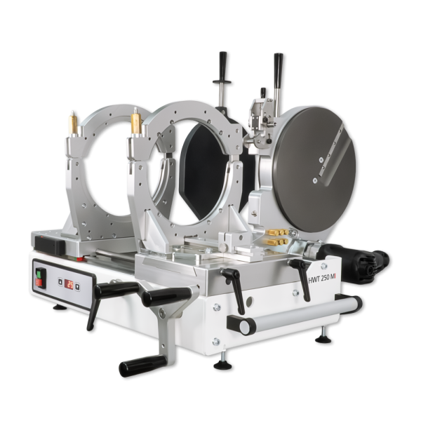 A HÜRNER HWT 250 MI egy univerzális műhelyállomás csövek, szegmensek és idomok megmunkálásához és hegesztéséhez PE, PE 100 RC, PP és PVDF anyagokból.